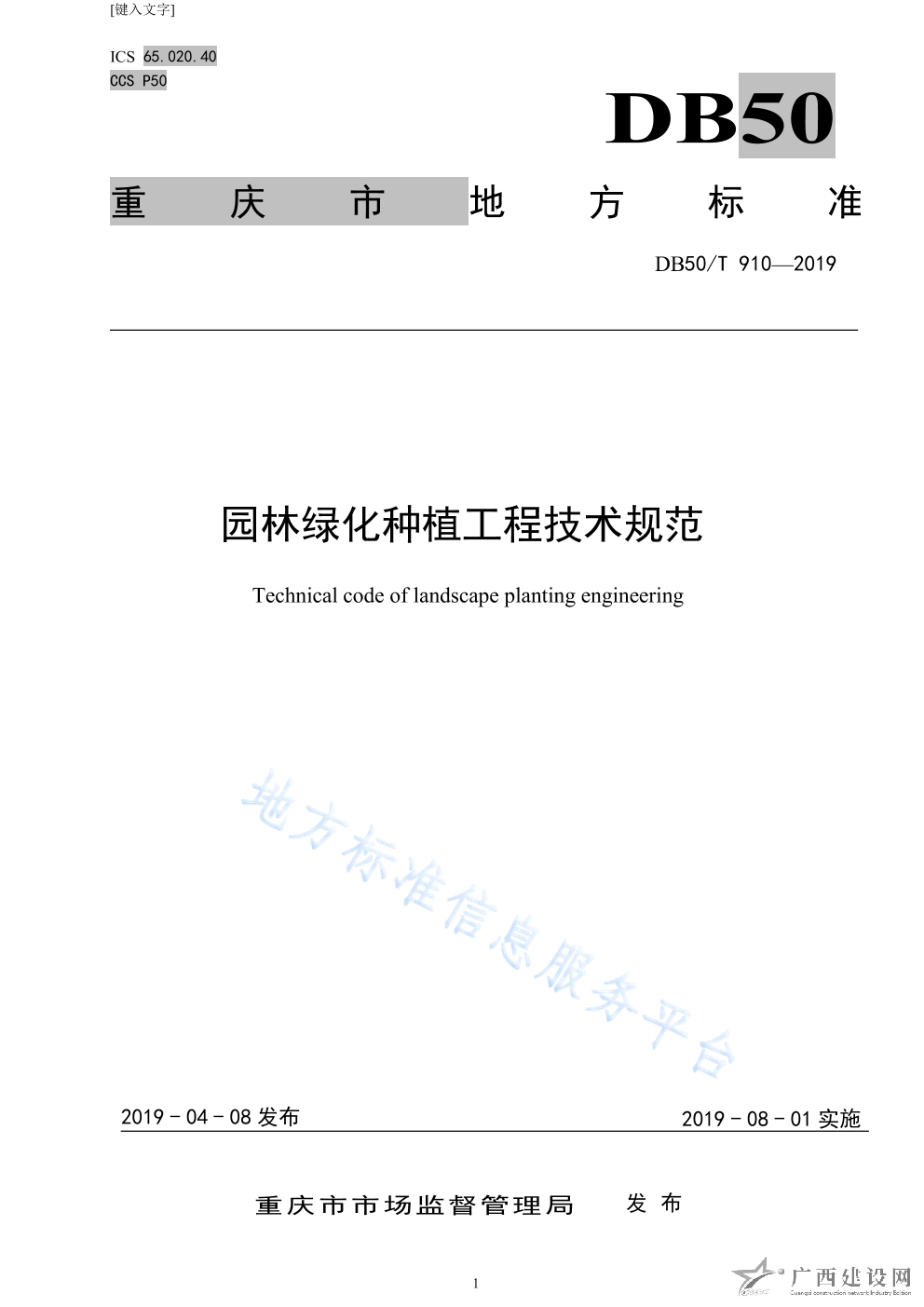 DB50 T905-2019房屋建筑地址信息規范
