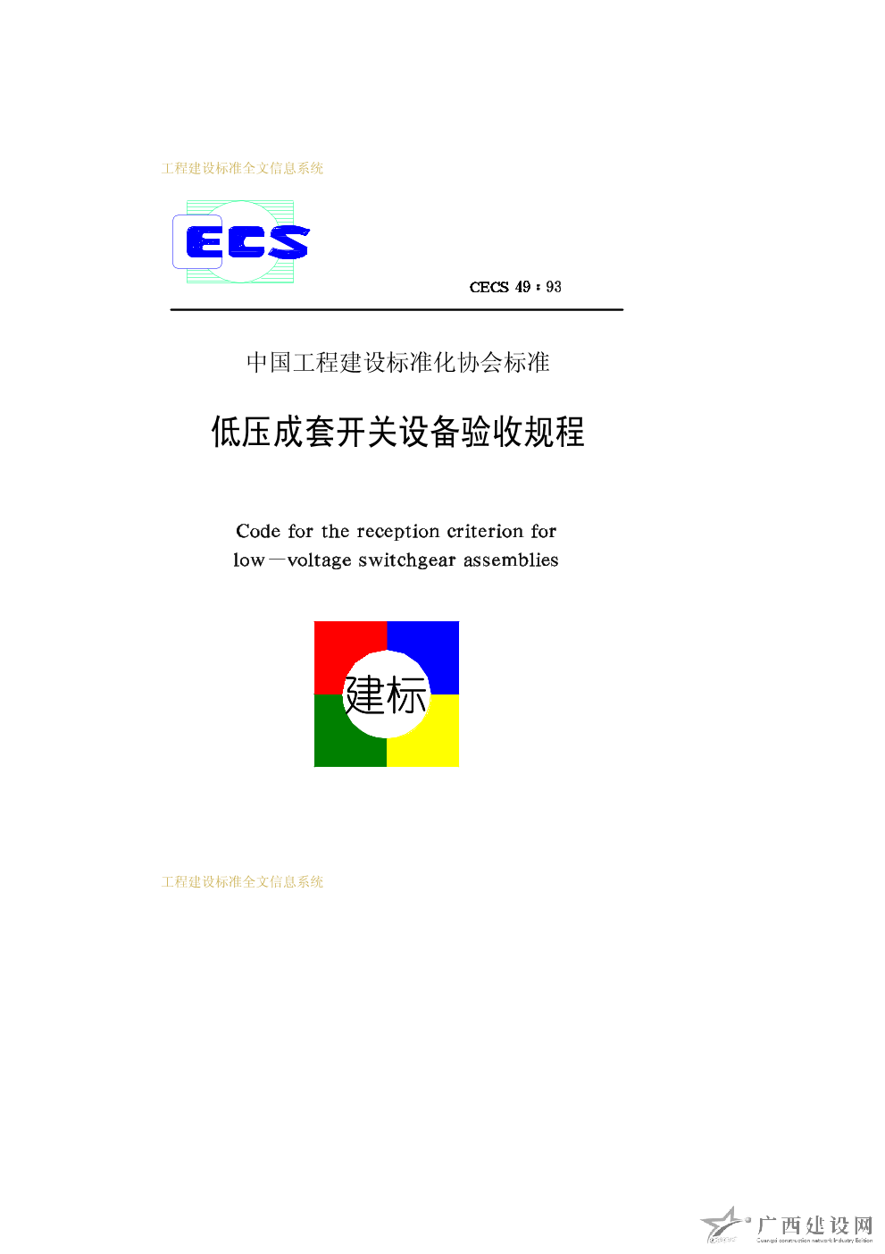 低壓成套開關(guān)設(shè)備驗(yàn)收規(guī)程 CECS49∶93