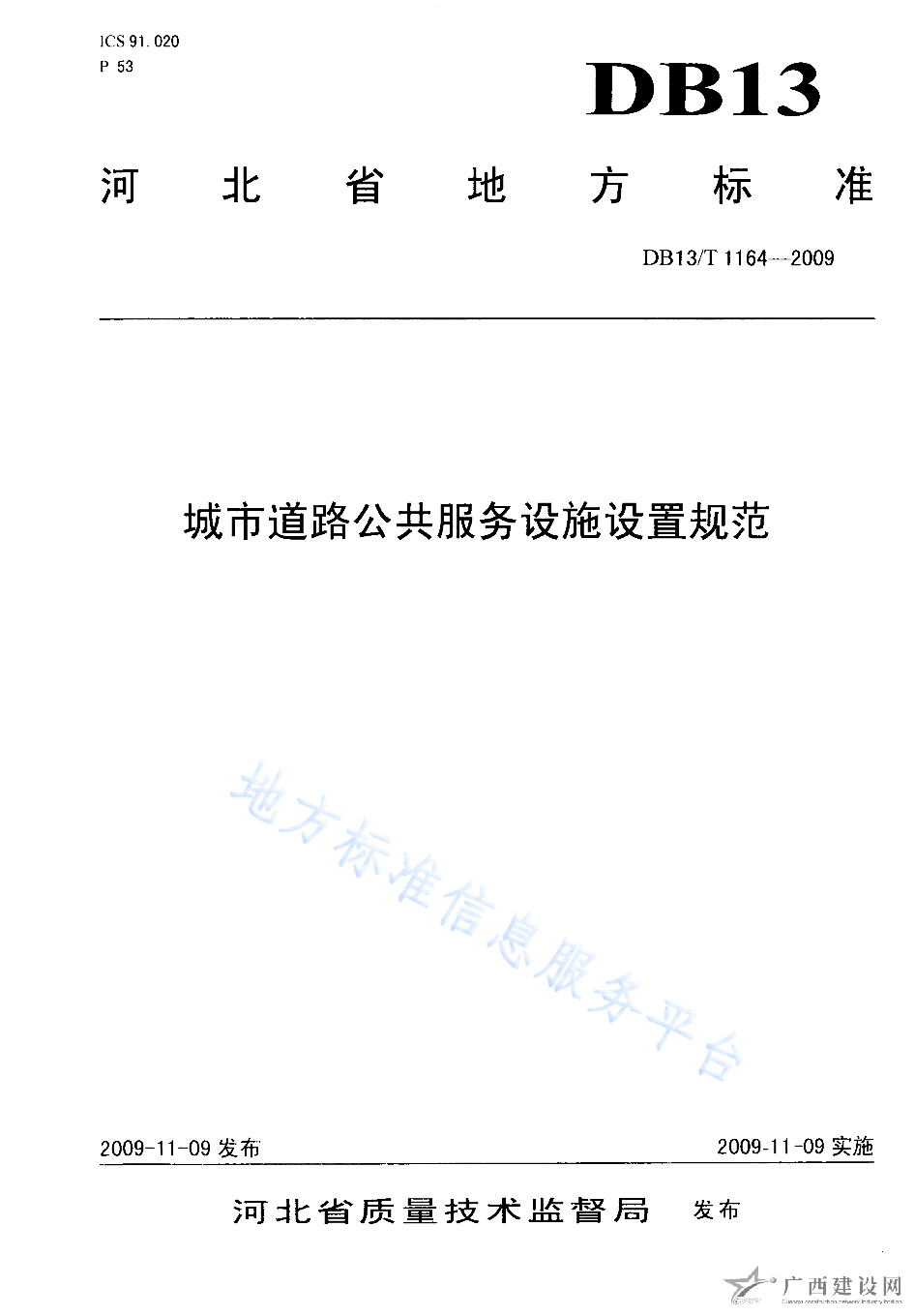DB13 T 1164-2009城市道路公共服務(wù)設(shè)施規(guī)范