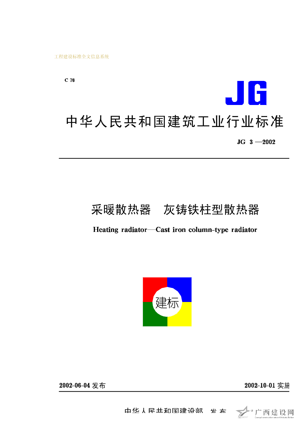 采暖散熱器灰鑄鐵柱型散熱器 JG3—2002