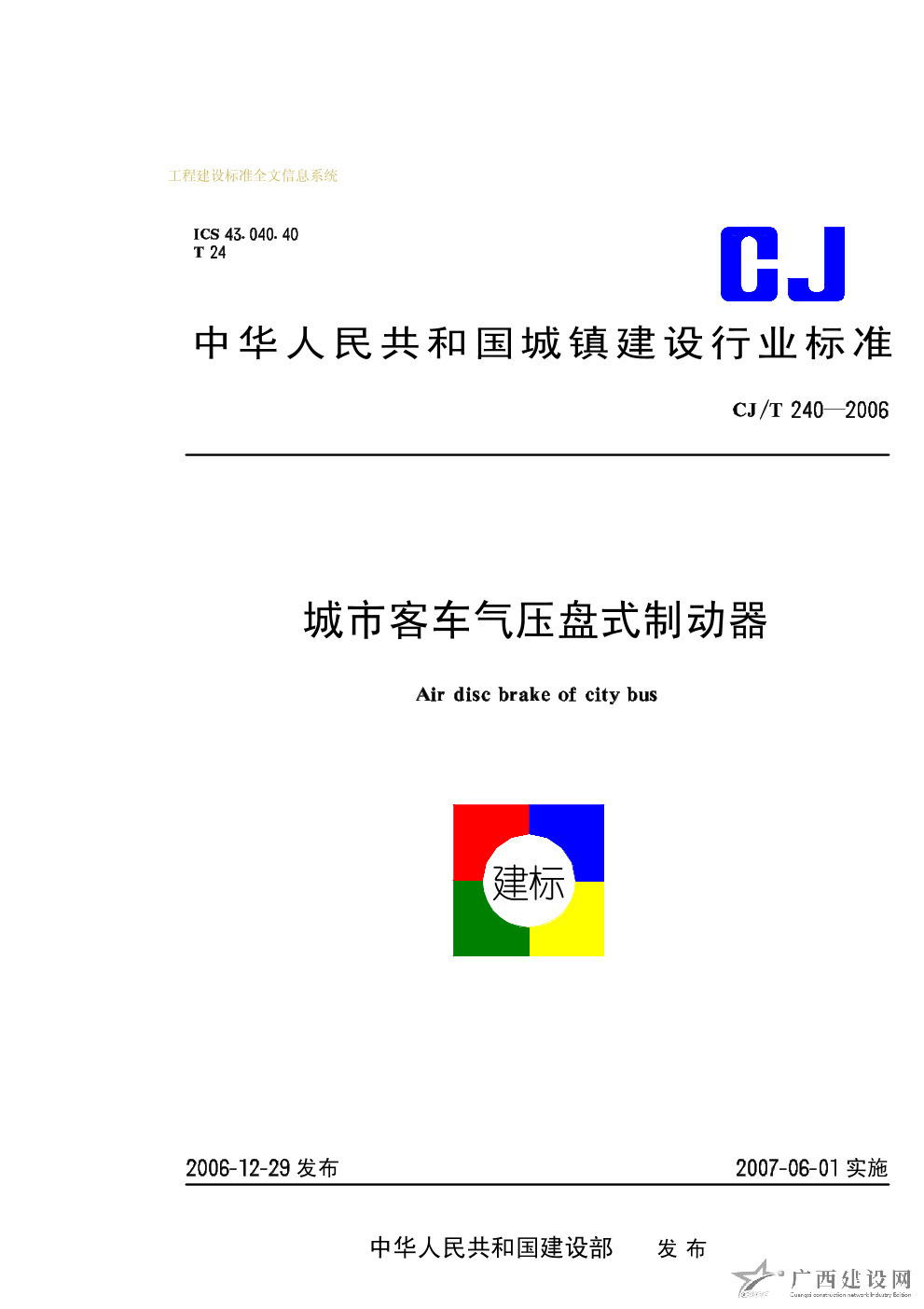 城市客車氣壓盤式制動器 CJ/T240-2006